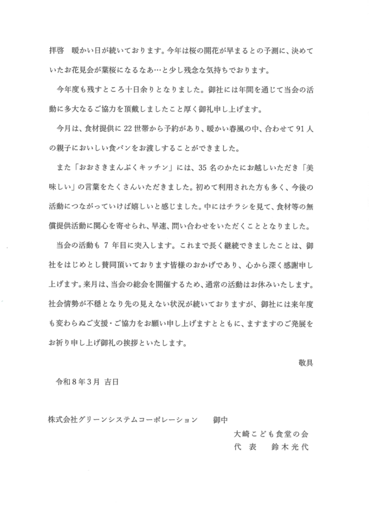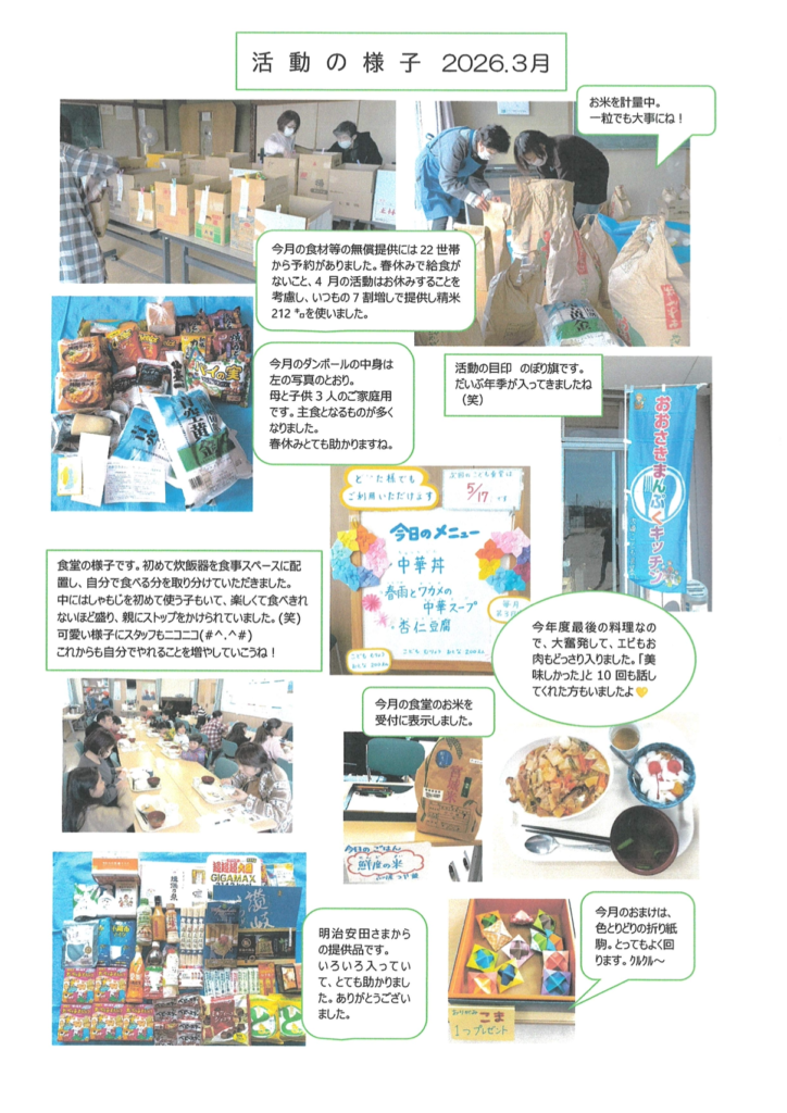 • 子ども食堂から御礼の写真と手紙、活動広報 2026年4月3日