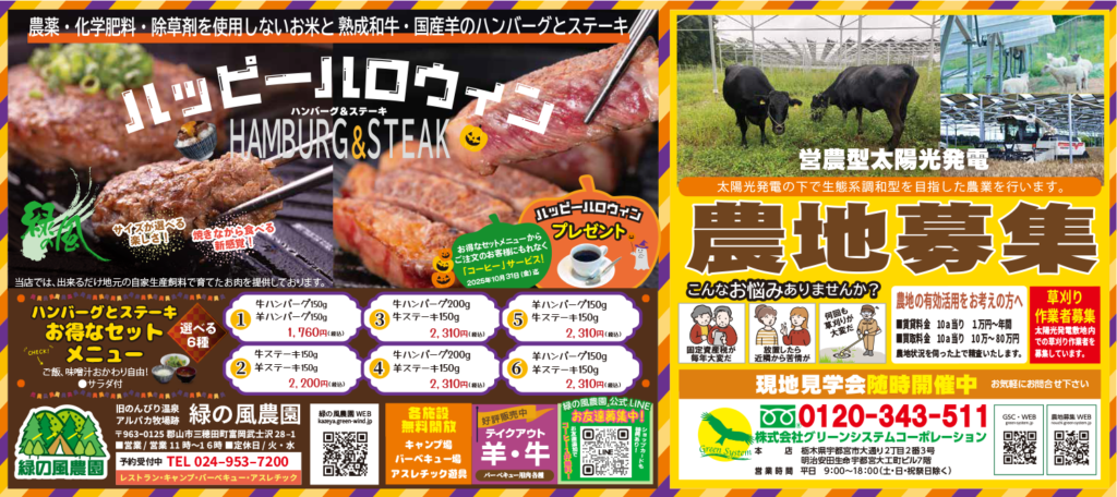 農地募集広告と緑の風農園「ハッピーハロウィン」企画です。